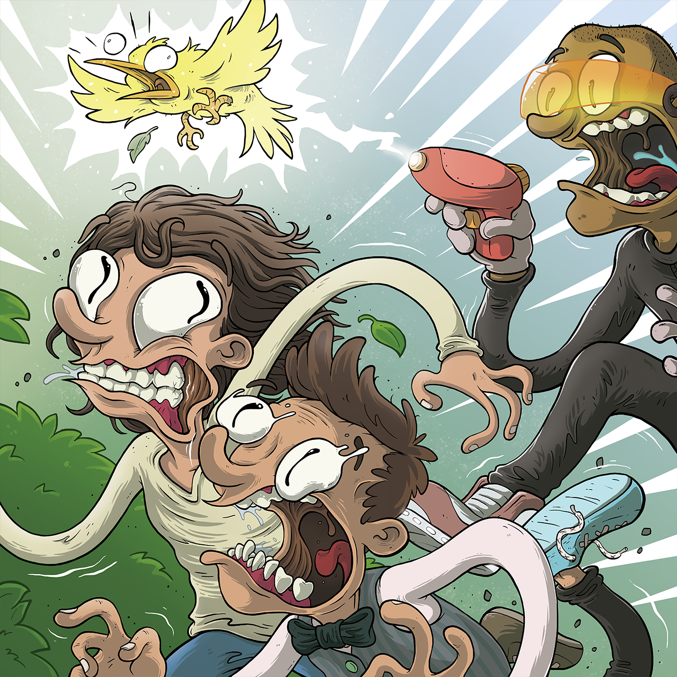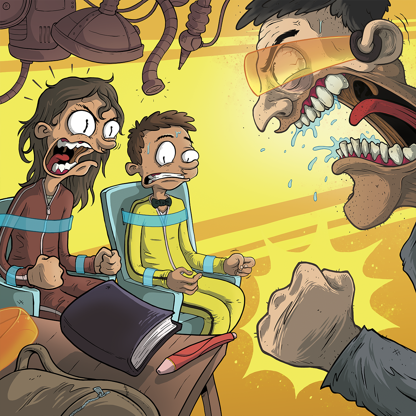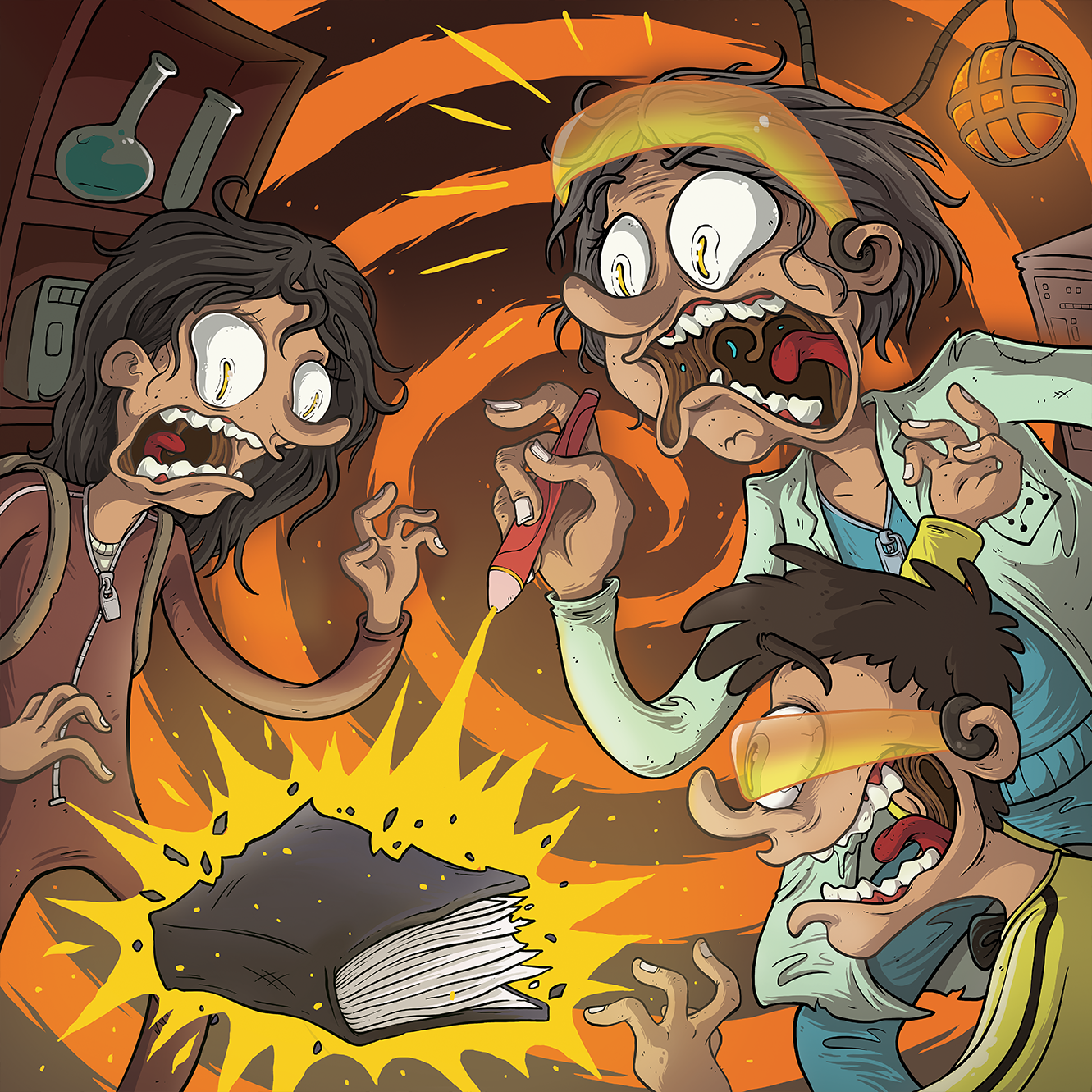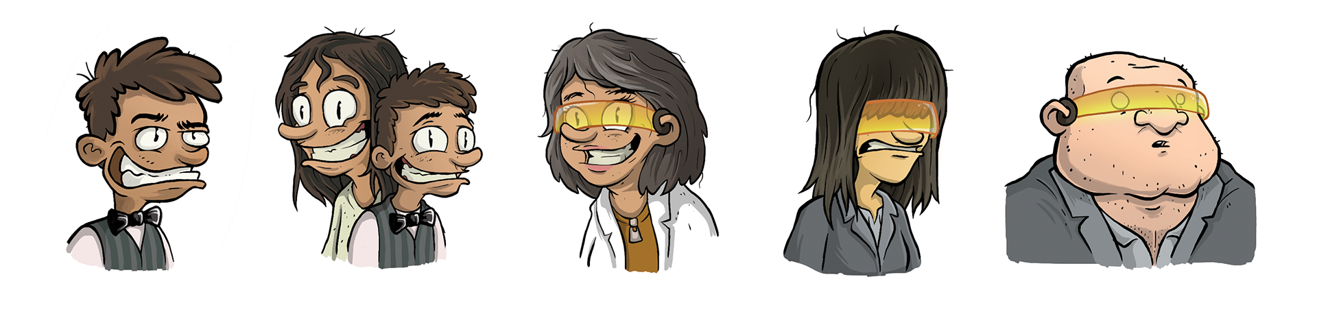 I was hired to design the characters of the book, and illustrate a scene for every chapter in the story. I also designed vignette illustrations for the board games, and the logo for the project. Every other design element was done by the talented Sebastian Koziner.